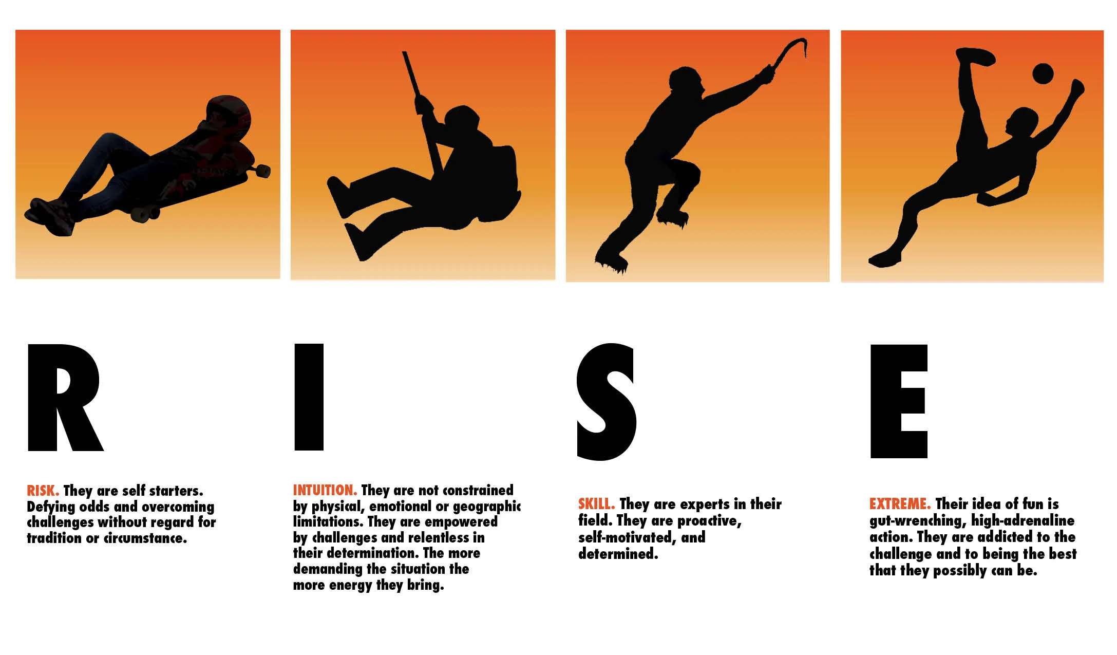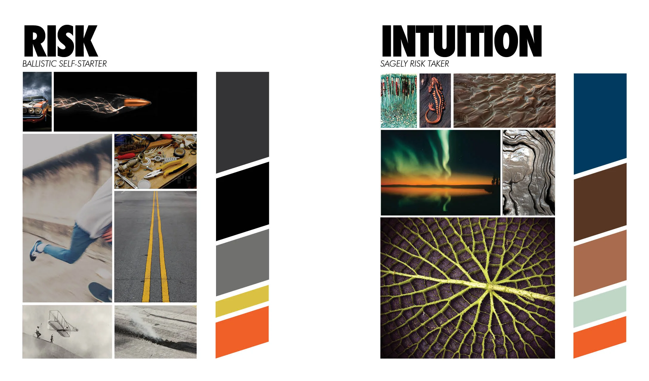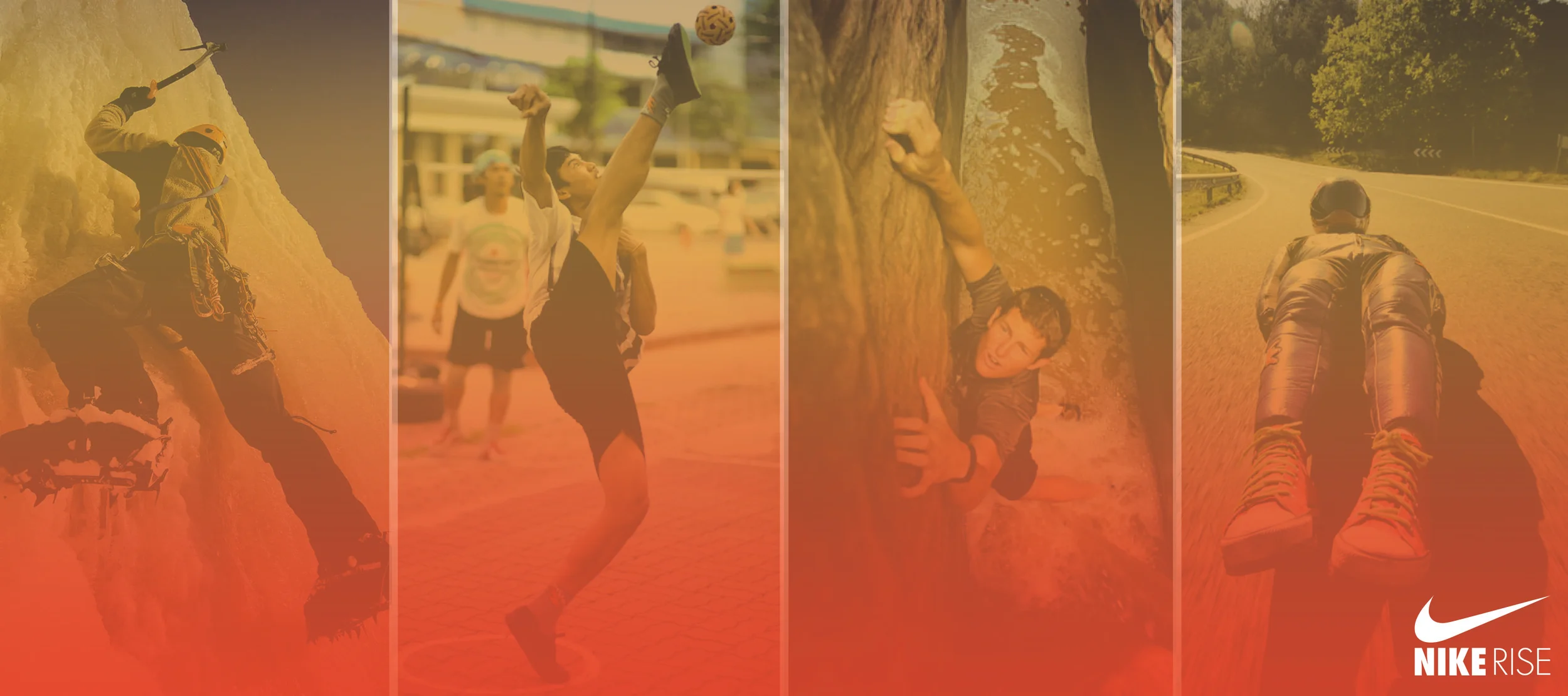 Based on the activities and personalities that represented each sport, I created visual inspiration boards to capture their essence and build a unifying visual identity for the new RISE brand. These boards also served to guide and inspire each of the footwear designers as they developed concepts for their respective sports and athletes.